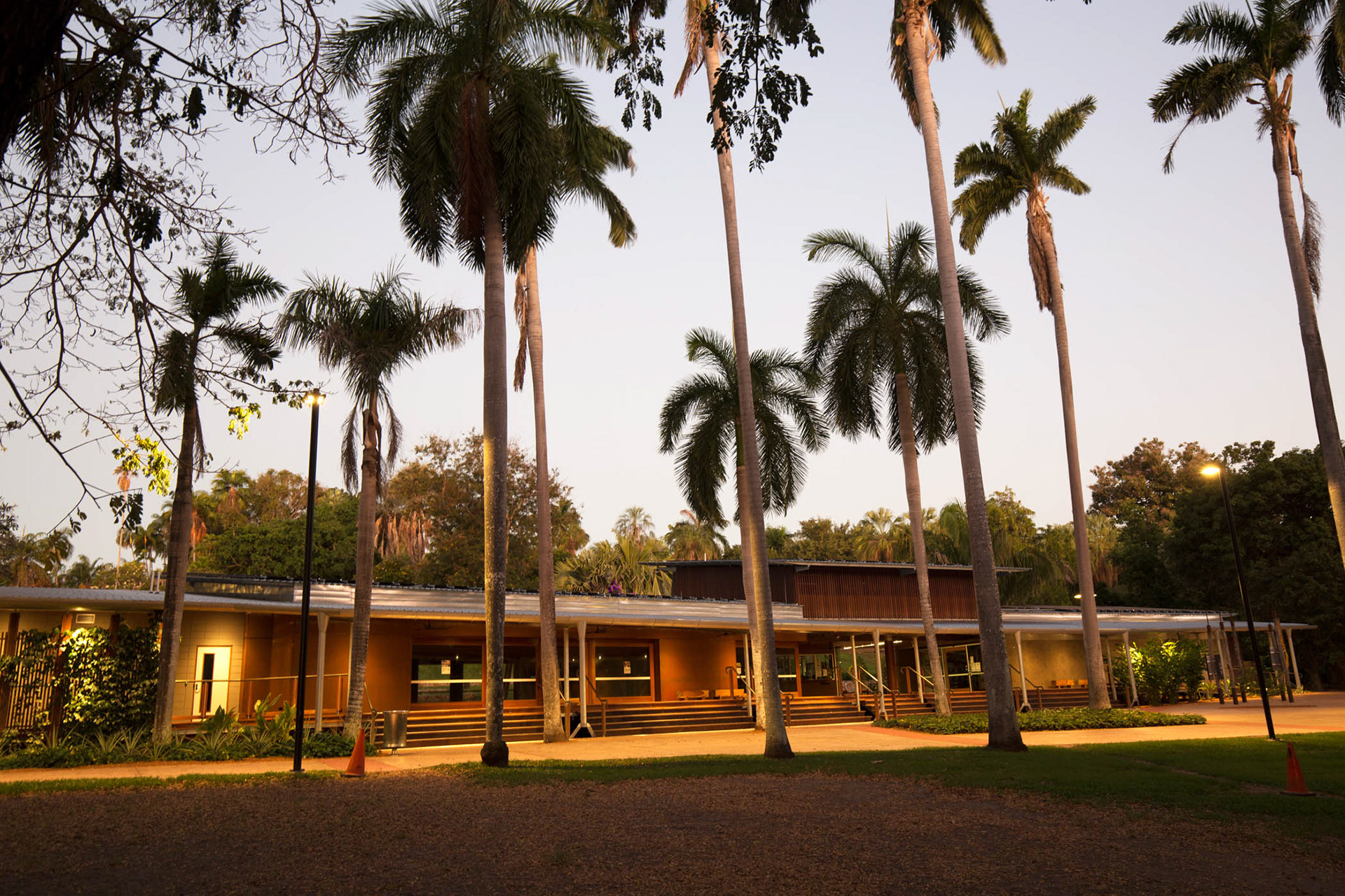 The building form engages with the landscape creating long vistas towards the lilypond and fountain as well as framing views through the building towards a new amphitheatre created on Frangipani Hill.